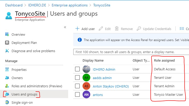 - Roles Auth - this authorization extends the instance auth and adds a requirement that the user in the TonycoAdmin Role. This only works for business users from Microsoft 365 business universe. It is implemented using the Application Roles model